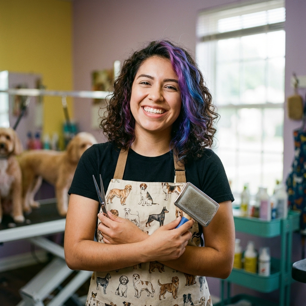Estilista canina certificada con 8 años de experiencia. Especialista en cortes de raza y tratamientos dermatológicos. Certificada en técnicas Fear-Free para reducir el estrés de las mascotas durante el baño y corte.